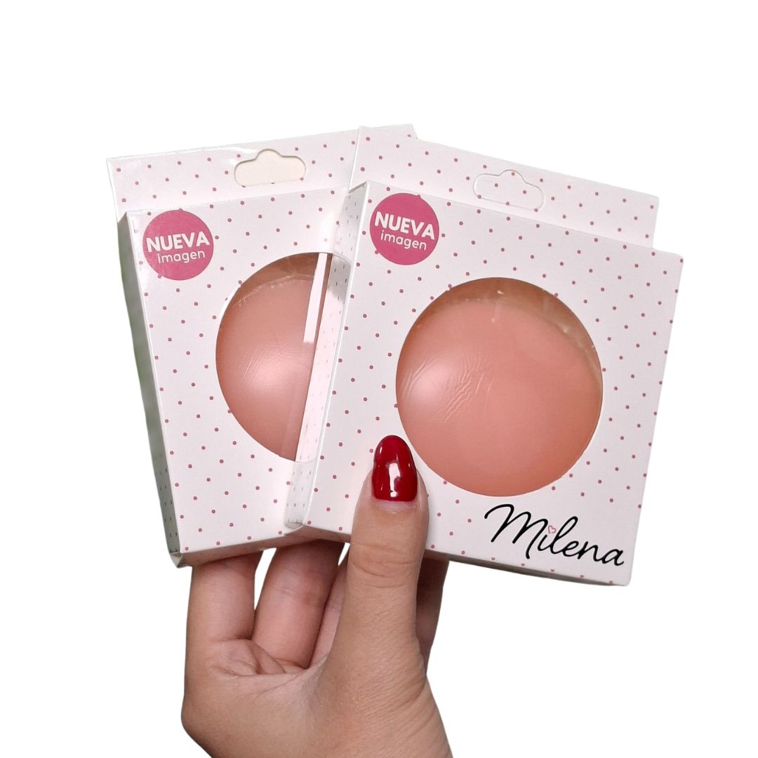 Pezoneras de silicona autoadhesivas y reutilizables de Milena. Diseñadas para un ajuste suave e invisible bajo la ropa, ideales para blusas ajustadas, vestidos y más. «Nueva Imagen» mejorada para mayor comodidad.