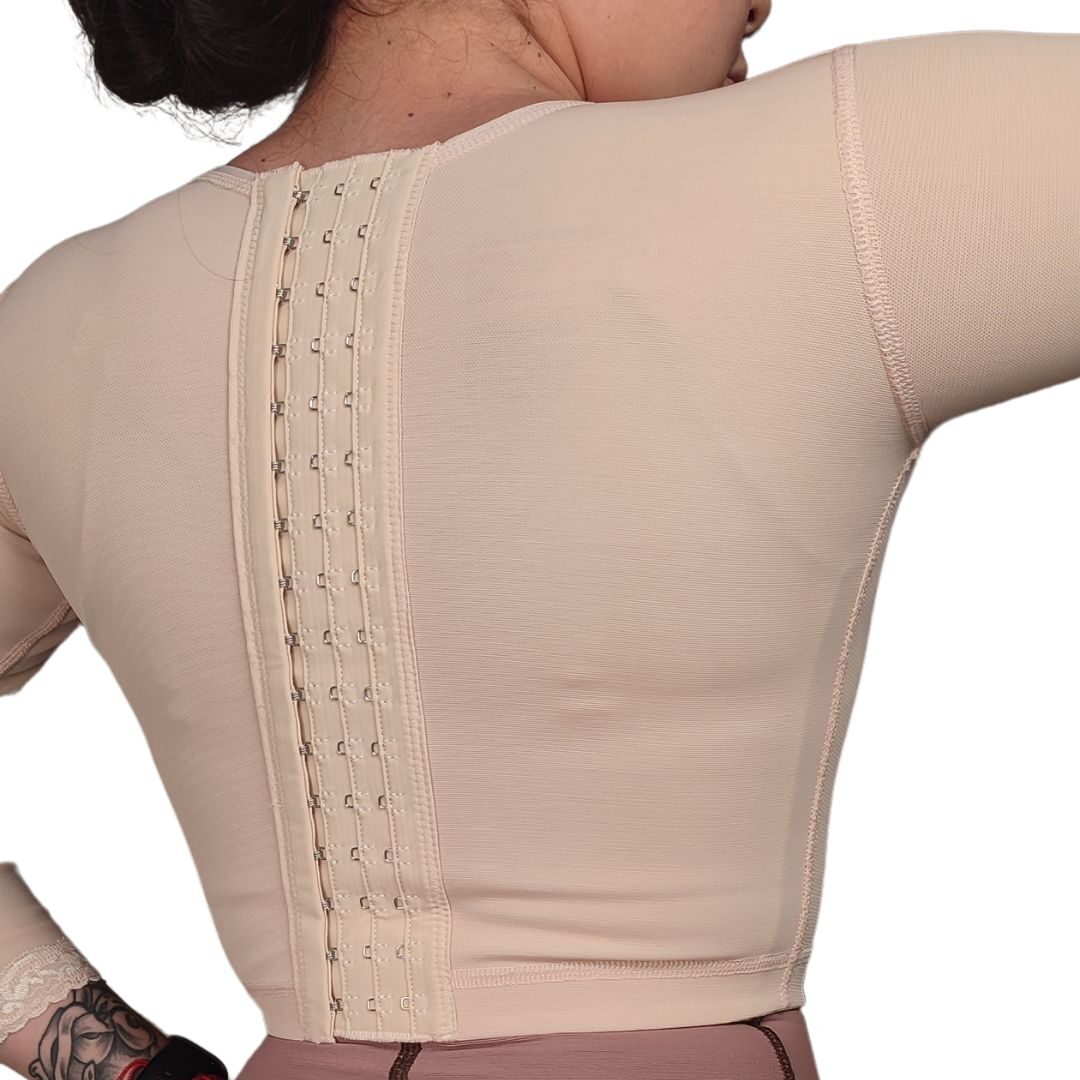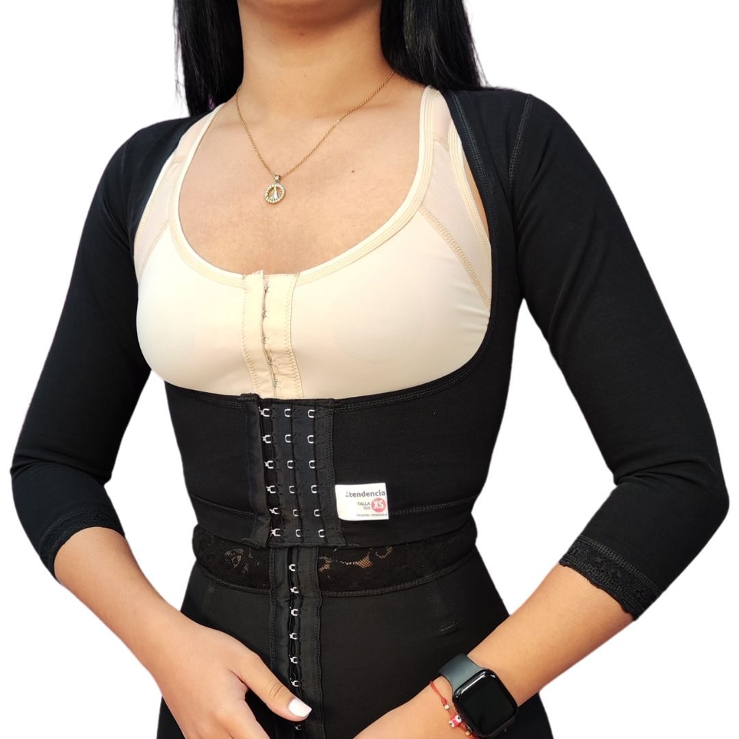 Esta prenda también conocida como: Faja de brazos postquirúrgica, Manga de compresión para brazos, Torerita postlipo, Faja de compresión para braquioplastia, Compresor de brazos, Faja de brazo postcirugía.